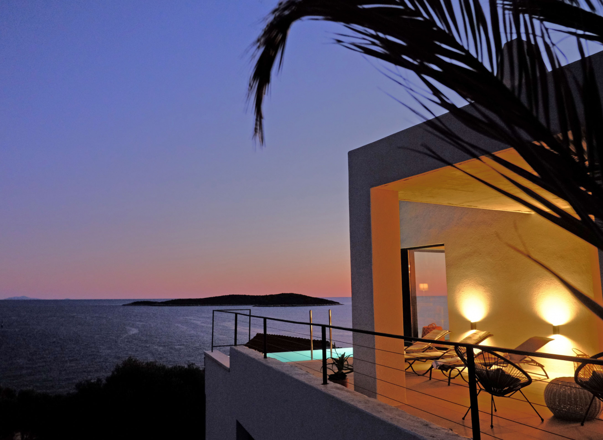 Die Kombination aus Stein und weißem Beton sorgt für eine exotische Atmosphäre und spiegelt den Geist dieser charmanten Insel Vis wider.