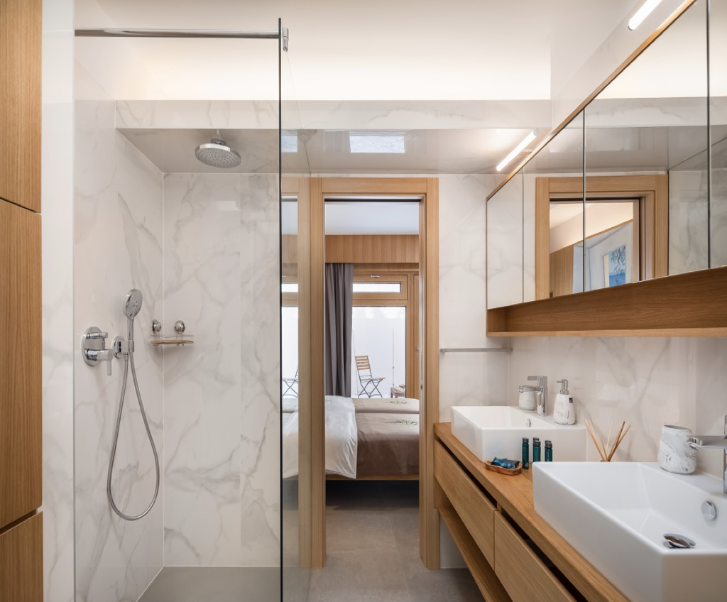 Klimaanlage und Fußbodenheizung sorgen dafür, dass sich die Gäste das ganze Jahr über wohlfühlen, während moderne Annehmlichkeiten wie ein Aufzug Komfort und Zugänglichkeit für alle bieten.