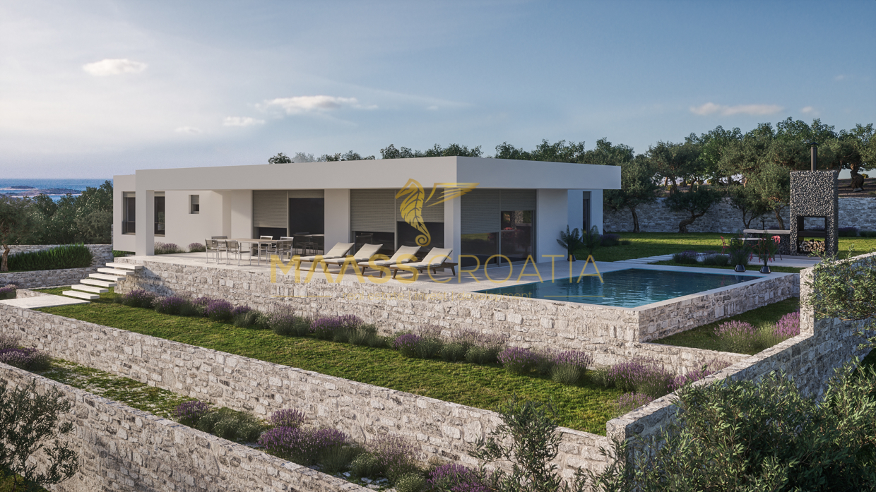 In Lozovac befindet sich ein Einfamilienhaus mit moderner Architektur und funktionaler Raumaufteilung mit Swimmingpool...